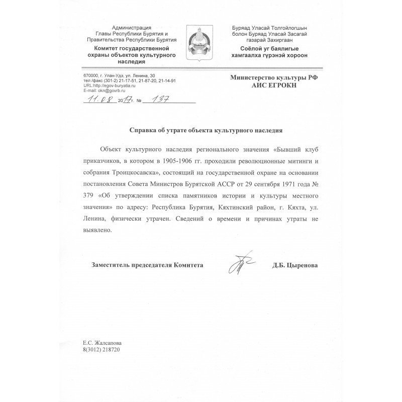- Адрес: Республика Бурятия, Кяхтинский район, г. Кяхта, ул. Ленина
