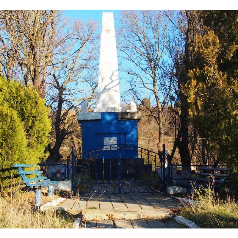 – каменный обелиск на трехступенчатом основании с мемориальной доской из белого мрамора с текстом: «Вечная слава героям Приморцам, погибшим в боях за освобождение Крыма от немецко-фашистских захватчиков Май 1944 г. Командование в/ч. п/п/. 48438.»; на братских могилах – четыре высоких мраморных надгробия с выгравированными