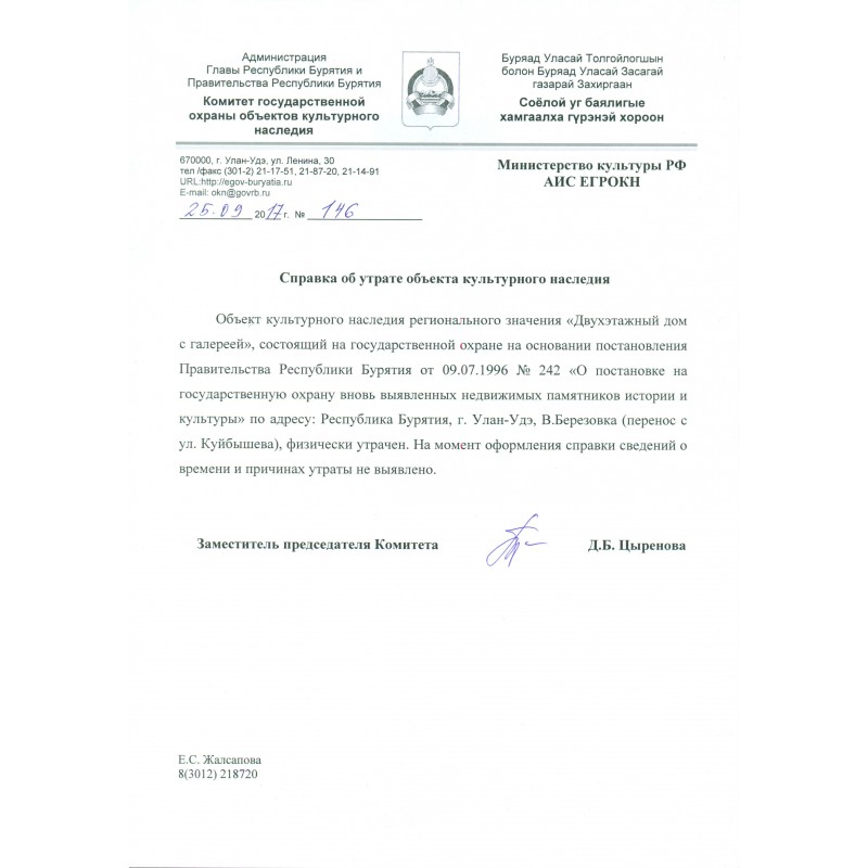 • Адрес: Республика Бурятия, г. Улан-Удэ, В. Березовка (перенос с ул. Куйбышева)