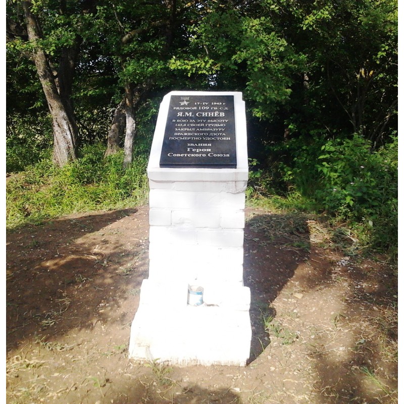 Высота 145,4, где рядовой Я.М. Синяев закрыл своим телом амбразуру дзота фашистов. За этот подвиг Я.М. Синяеву присвоено звание Героя Советского Союза