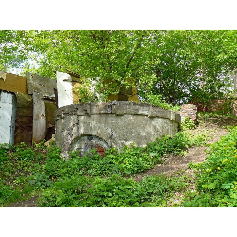 объёмно-пространственная композиция объекта культурного наследия периода начала XX в., представляющая собой круглую в плане подпорную стенку с ограниченной невысоким парапетом смотровой площадкой наверху и чашей водослива подковообразной формы с востока, включая высотные отметки по парапету;